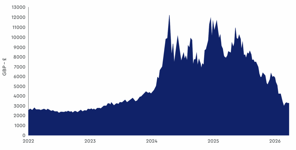 Since the all-time highs seen in 2024 and early 2025, cocoa prices have eased back to around £3,000 per tonne, bringing some relief to bakery manufacturers. This fall in price has been driven by a stronger harvest alongside reduced demand, helping rebalance a market that had previously been under severe supply pressure.