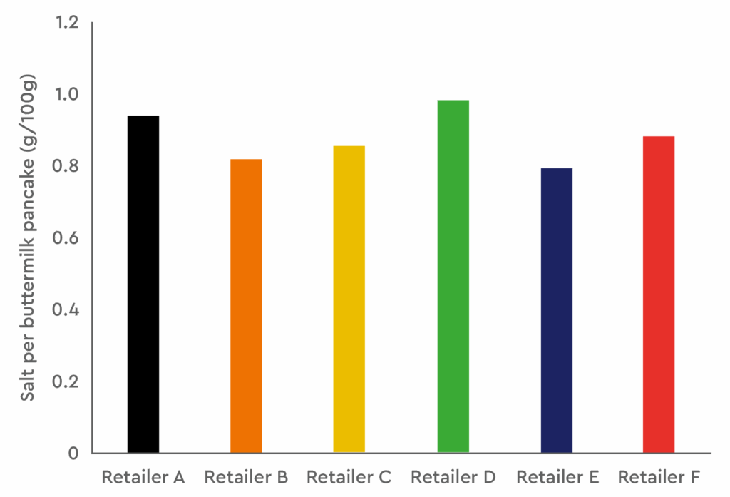 A buttermilk pancake purchased from a UK supermarket can contain as much as 0.99g of salt per 100 g of product.
